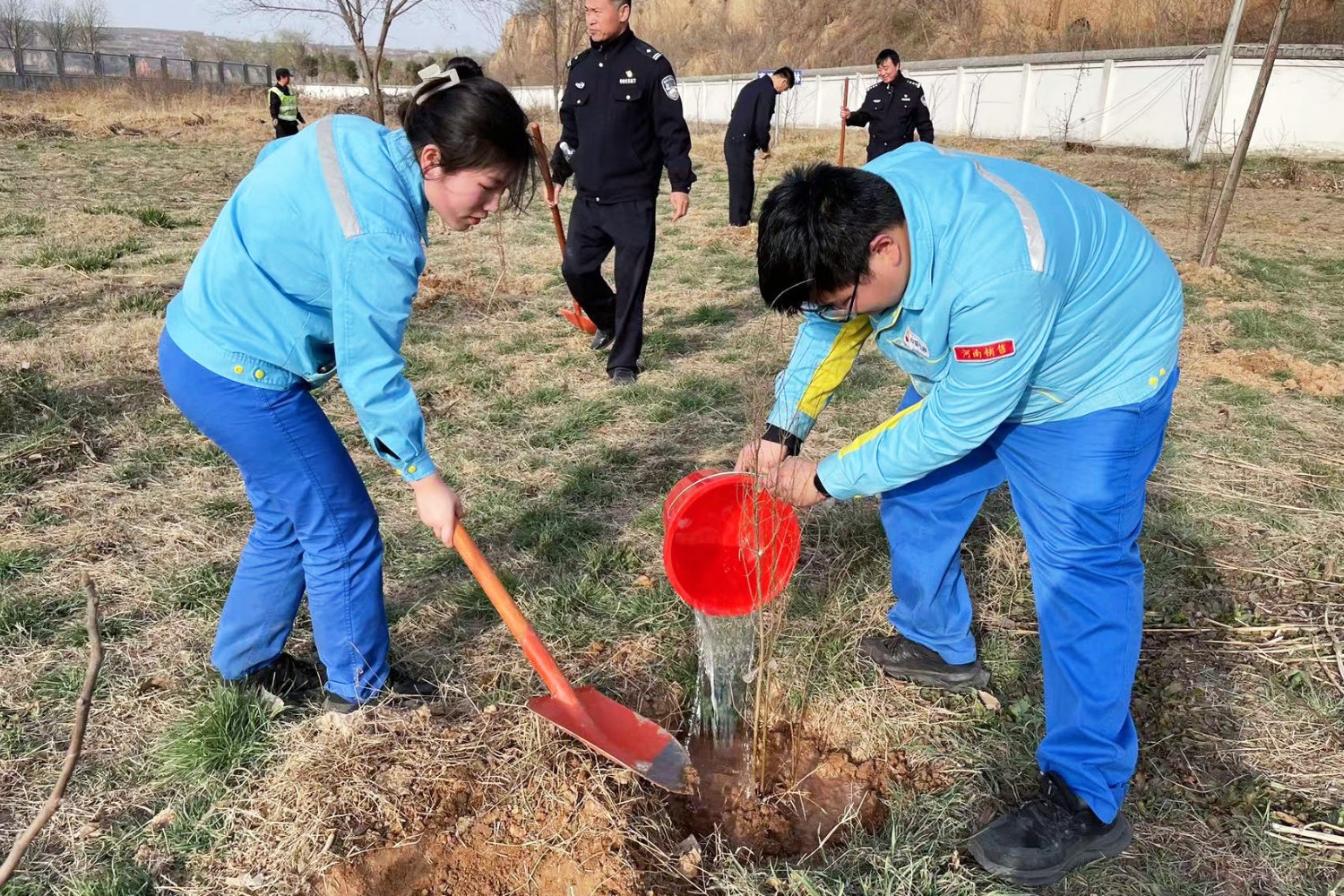 活動現(xiàn)場,大家熱情高漲、干勁十足,揮锨鏟土、栽種樹木、培土圍堰、踩土壓實……每個環(huán)節(jié)都配合默契,整個過程細(xì)致認(rèn)真、有條不紊。一番勞作后,為服務(wù)區(qū)添了一抹亮麗的新綠,也為春日大地增添著勃勃生機,大家用實際行動詮釋守護綠水青山的初心與使命。