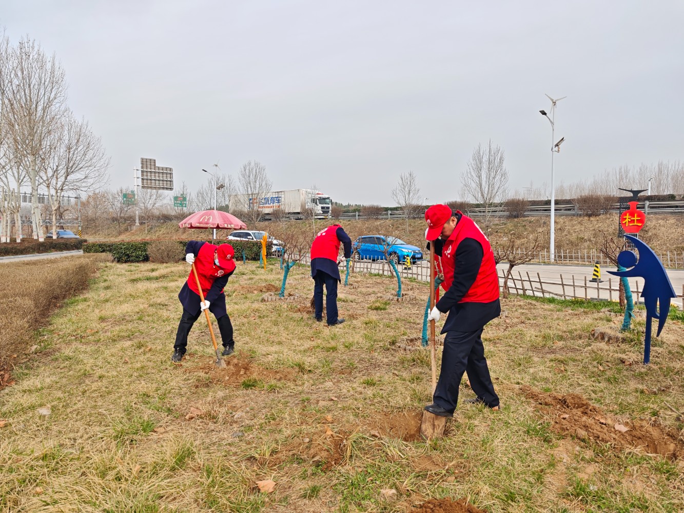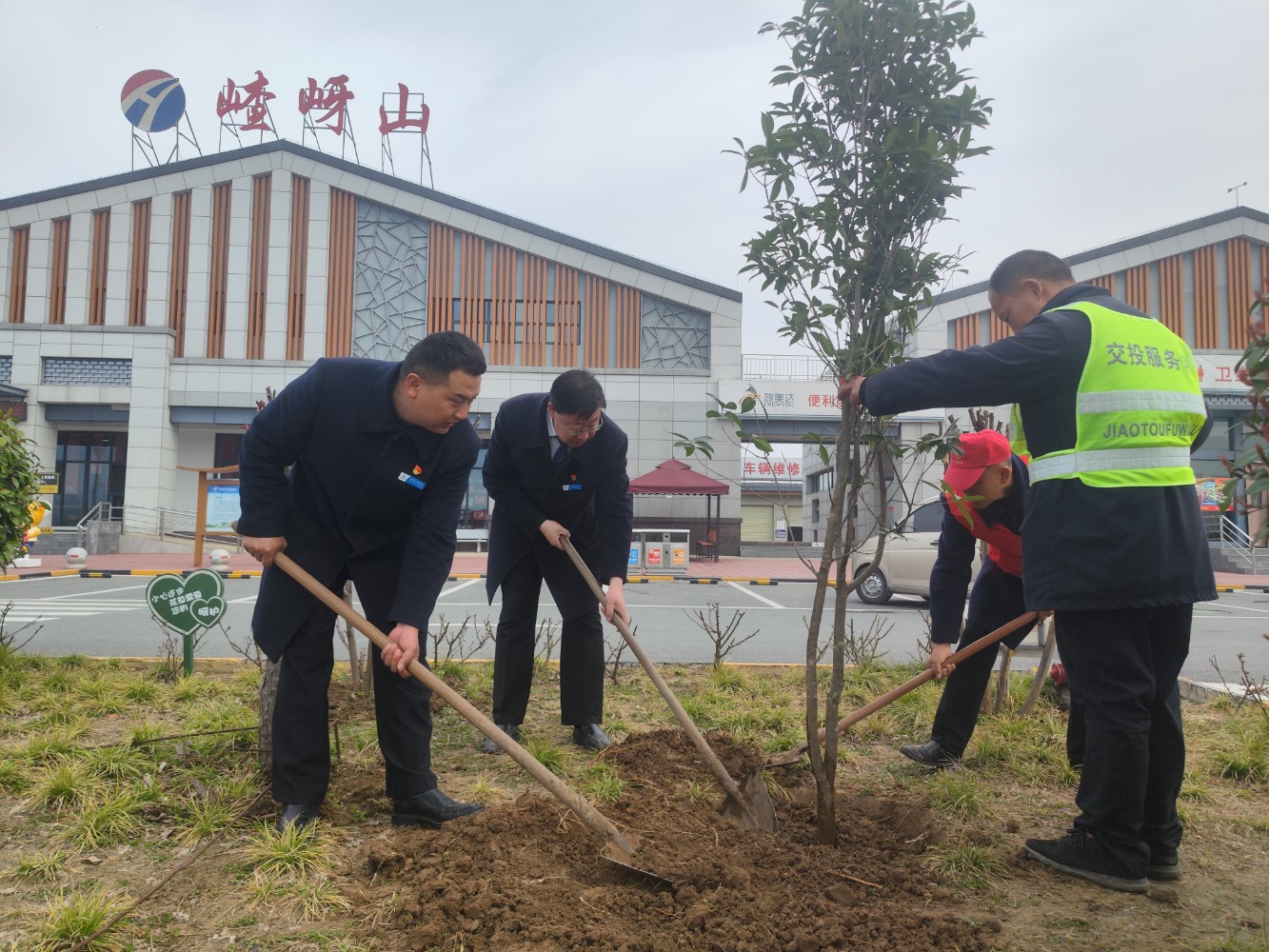 活動中,大家熱情高漲、干勁十足,手持鋤頭、鐵鏟、水桶等工具,有的揮鍬鏟土,有的扶苗填坑,將一棵棵樹苗植入泥土,現場一片熱火朝天的繁忙景象。經過一番精心勞作,一棵棵新栽種的樹苗迎風而立,為初春的服務區增添了勃勃生機的綠意。本次活動有效提升了大家植綠、護綠、愛綠的意識,美化充實了員工生活,下一步,公司將持續秉承綠色發展理念,持續關注生態環境保護,積極開展各類環保活動,為過往司乘安全健康出行保駕護航。