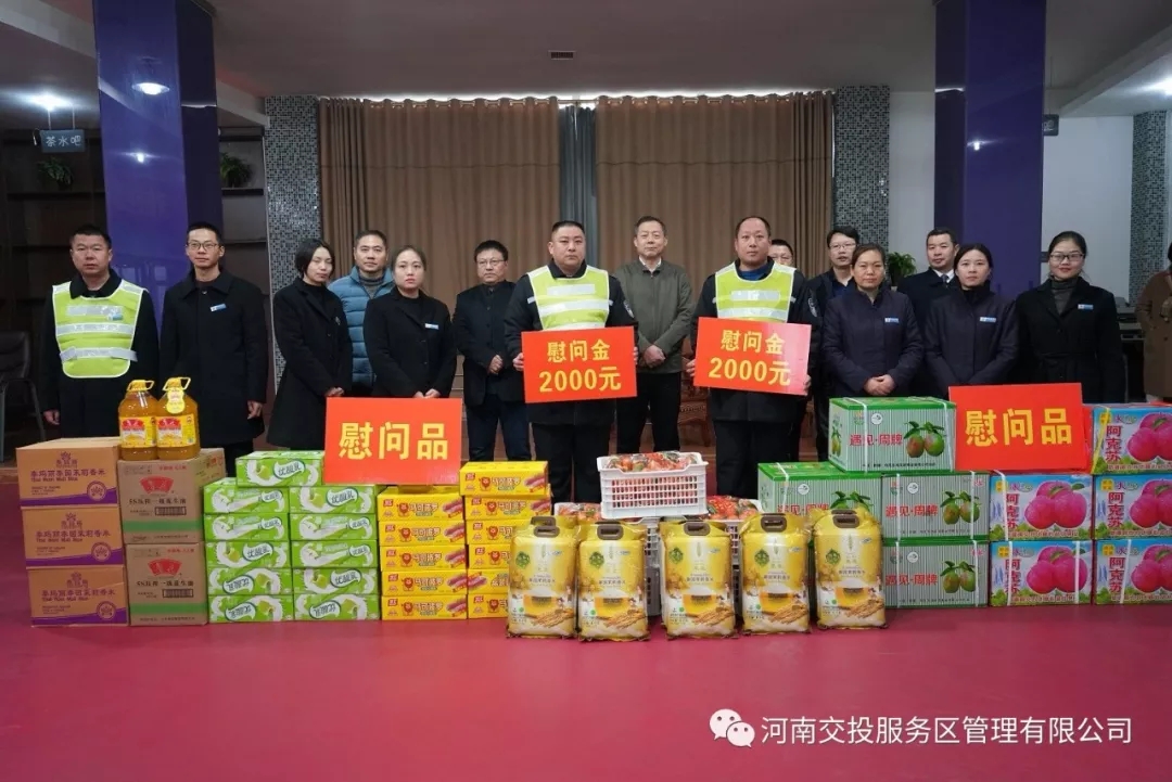 1月30日,河南交通投資集團黨委副書記、工會主席劉院生、人力資源部部長張國選,在公司總經理任衛彬、直屬分公司總經理李平、黨委書記陳東凱等領導的陪同下到鄭州北服務區開展春節節前慰問工作。 劉院生副書記、張國選部長先后到服務區廣場、餐廳、超市,對堅守一線的員工進行慰問,送上節日的祝福和問候。 慰問中,劉院生副書記、張國選部長與服務區兩名特困職工及員工代表進行了親切交談,并帶來了慰問金和慰問品,劉院生副書記叮囑服務區管理人員,在做好春運保障工作的同時,要時刻把員工的生活放在心間,確保員工度過一個喜慶、祥和的節日。