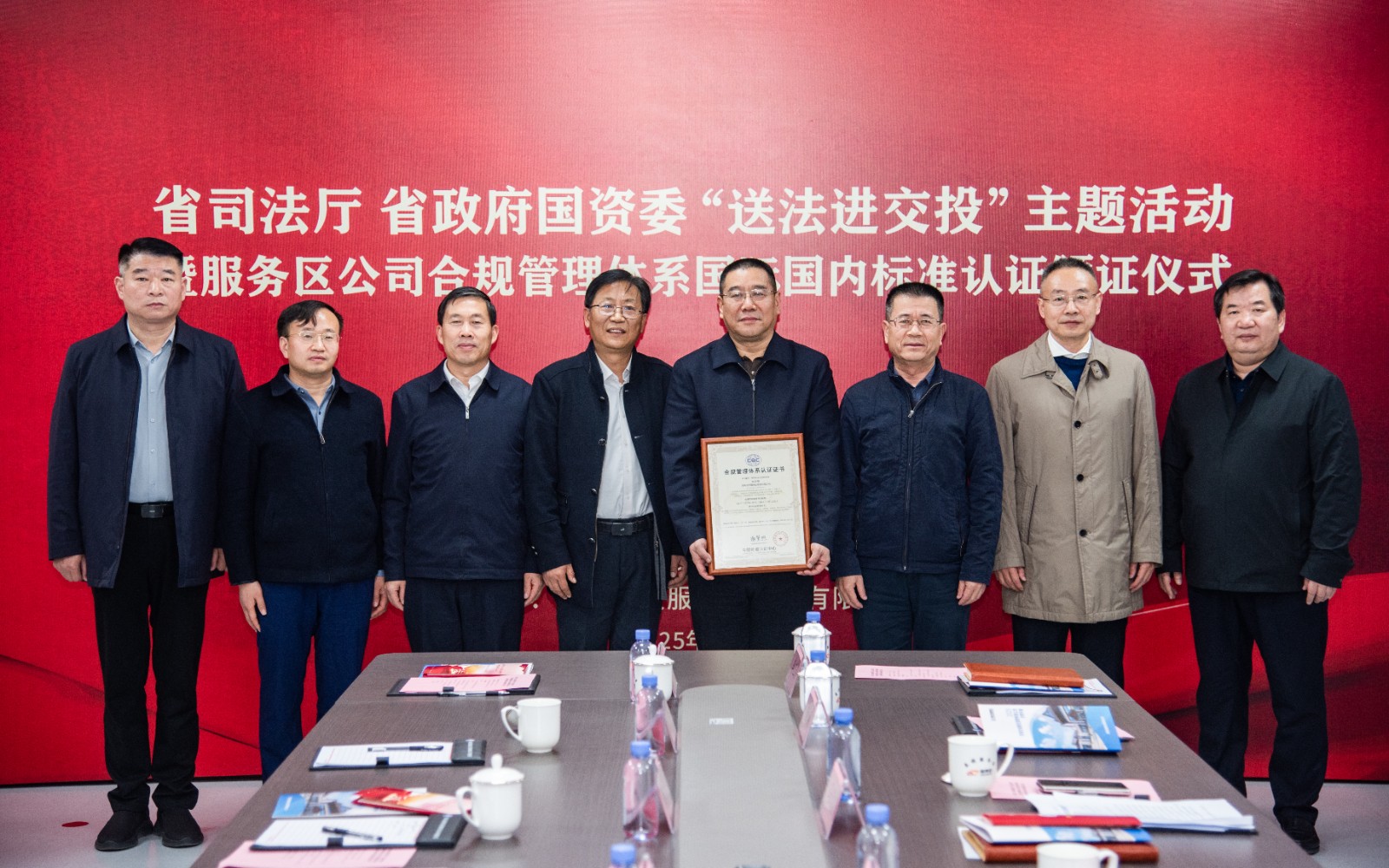 省司法廳、省政府國資委聯合開展“送法進交投”憲法宣傳周主題活動暨服務區公司合規管理體系國際國內標準認證頒證儀式