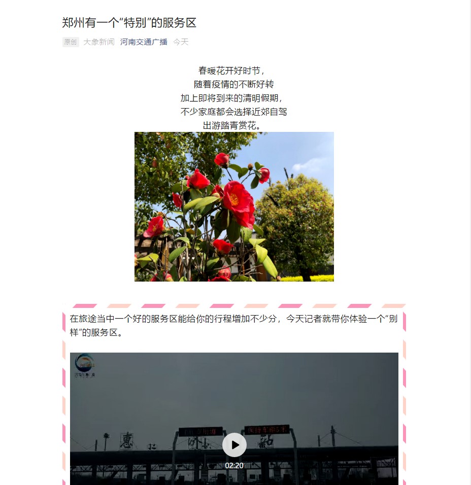 2月7日,中國服務區以題為《河南|抗擊疫情一線,五個“加強”作保障,黨員干部沖在前》對公司疫情防控工作進行了報道。