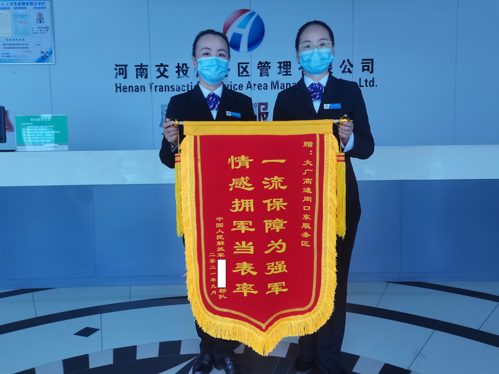 2021-10-13 作者:10月12日,周口東服務(wù)區(qū)收到福建省解放軍某部隊寄來的一面寫著“一流保障為強軍 情感擁軍當表率”的錦旗,隨錦旗一同寄來的還有一封感謝信。原來在河南720暴雨災害搶險期間,解放軍某部隊馳援河南兩次途經(jīng)周口東服務(wù)區(qū)進行臨時休整及食宿,服務(wù)區(qū)針對部隊服務(wù)保障要求精心組織…