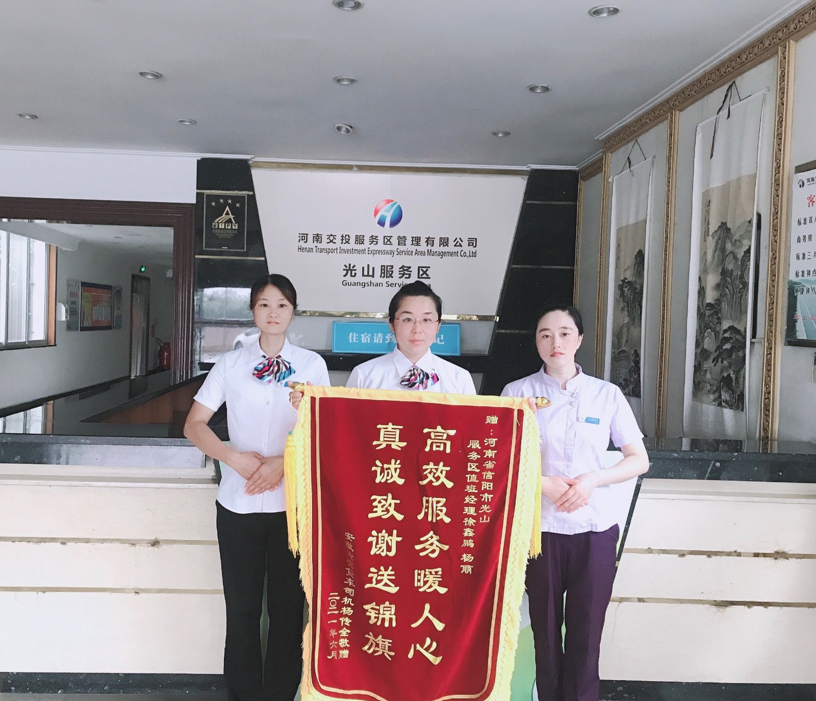 2021-07-04 作者:7月4日,光山服務區收到由安徽六安貨車郵寄來的的一面錦旗,上面寫著“高效服務暖人心 真誠致謝送錦旗”。原來在6月29日,服務區員工楊麗、徐林芳工作期間發現廣場一名貨車駕駛員因下車檢修車輛不慎受傷,即使手按著頭部也不斷地流出鮮血。值班經理徐鑫鵬第一時間趕到現場,為…