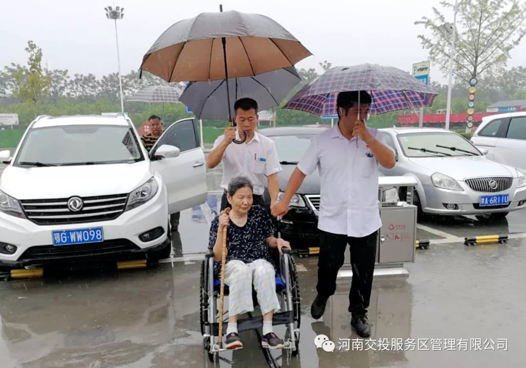 2019-06-28 作者:6月28日,周口東服務(wù)區(qū)所在區(qū)域突降大雨。中午時分,正是用餐高峰期,這時,一名男子急急忙忙跑到餐廳,向服務(wù)員咨詢服務(wù)區(qū)有無輪椅。看到該男子衣服濕透,正在忙碌的服務(wù)員將輪椅交給男子后,又把傘借給他,并主動詢問是否需要幫忙。該男子婉言謝絕后,就推著輪椅匆匆而去,看…