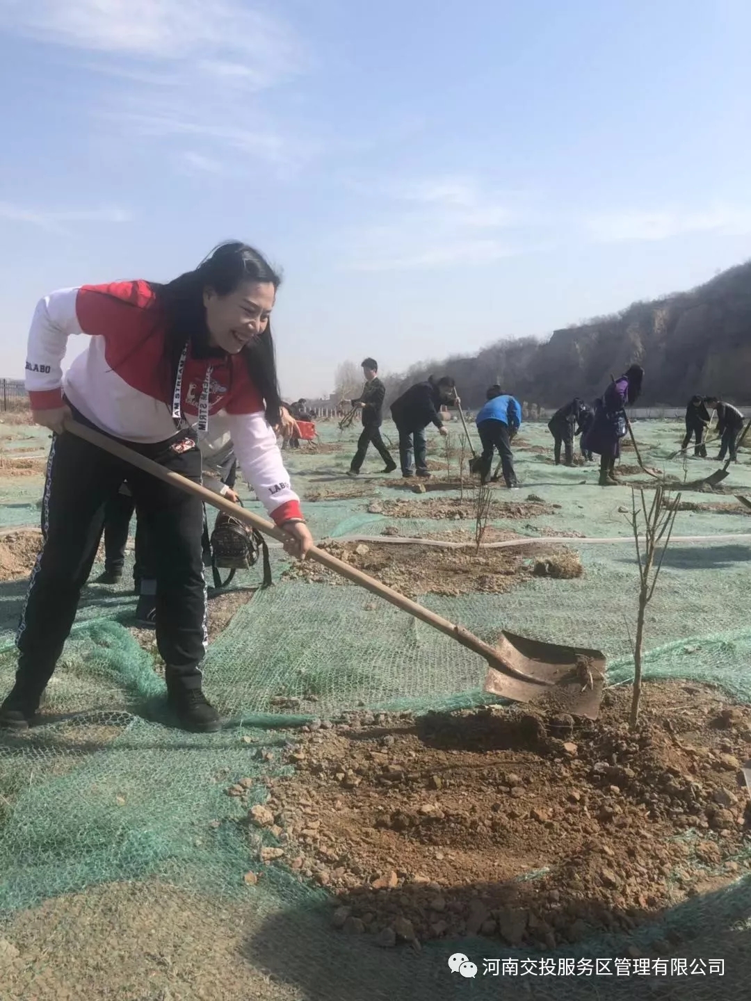 吹風拂枝吐新綠,正是植樹好時節。3月14日上午,為踐行“綠水青山就是金山銀山”的生態文明建設理念,激發職工熱愛生活、熱愛自然的情感,公司機關和文化傳媒公司干部職工在鞏義服務區進行植樹造綠活動,為創造“綠色鄭州,宜居家園”貢獻一份力量。 植樹現場,大家個個熱情飽滿,先是學習植樹小知識,“三埋兩踩一提苗”,緊接著行動起來,揮鍬的揮鍬、挖坑的挖坑、提水的提水,為石榴苗澆水、松土,最后為種下的樹苗系上紅絲帶。經過一上午的揮汗奮戰,一百多顆石榴苗豎立在鞏義服務區的花園里,大家用自己的實際行動撒播了綠色,為服務區帶來了生機,為自然增添了和諧,成為了春天里一道靚麗的風景線。