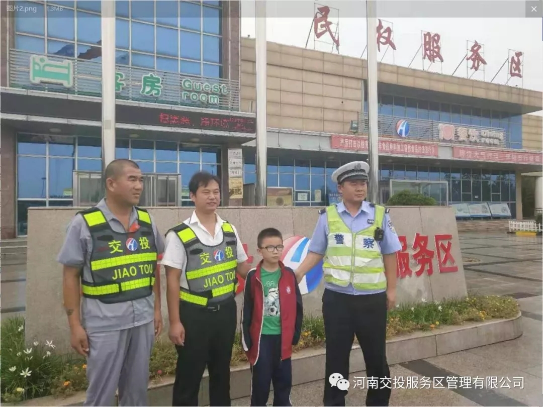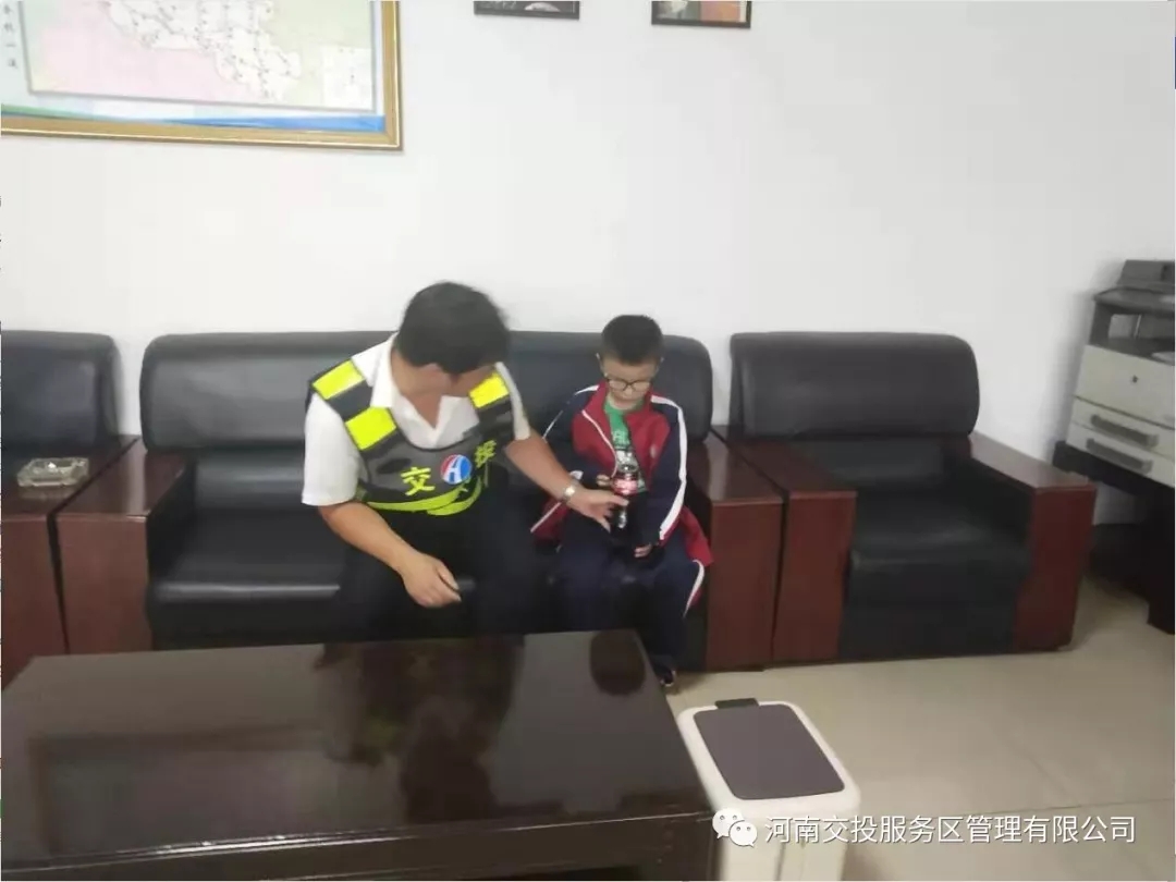 8月12日上午,民權(quán)服務(wù)區(qū)值班經(jīng)理在日常巡查過程中,發(fā)現(xiàn)一名身穿校服的孩子在服務(wù)區(qū)廣場邊哭泣邊尋找父母。 值班經(jīng)理見狀立即前去詢問,得知孩子和其父母去鄭州游玩,歸來途徑民權(quán)服務(wù)區(qū)去衛(wèi)生間時走散。值班經(jīng)理馬上向服務(wù)區(qū)經(jīng)理匯報,經(jīng)理聞訊當(dāng)即將孩子帶至值班室休息,并拿來飲料、零食安撫孩子情緒。通過耐心溝通,孩子情緒慢慢平復(fù),并回憶起了家長的電話。工作人員立即與其父母取得聯(lián)系,孩子的父母此時也心急如焚,得知孩子已被服務(wù)區(qū)工作人員妥善安置,激動萬分,十分感謝服務(wù)區(qū)的熱心幫助。此時孩子父母已經(jīng)回到商丘,為了讓孩子第一時間與父母團聚,民權(quán)服務(wù)區(qū)經(jīng)理王德波立即聯(lián)系值班高速交警,請他們協(xié)助幫忙把孩子送回父母身邊。 中午時分,服務(wù)區(qū)接到孩子父母和高速交警領(lǐng)導(dǎo)反饋電話,告知孩子已經(jīng)安全和父母團聚,對服務(wù)區(qū)熱心幫助表示感謝。