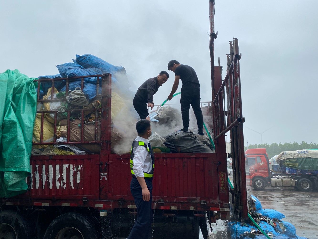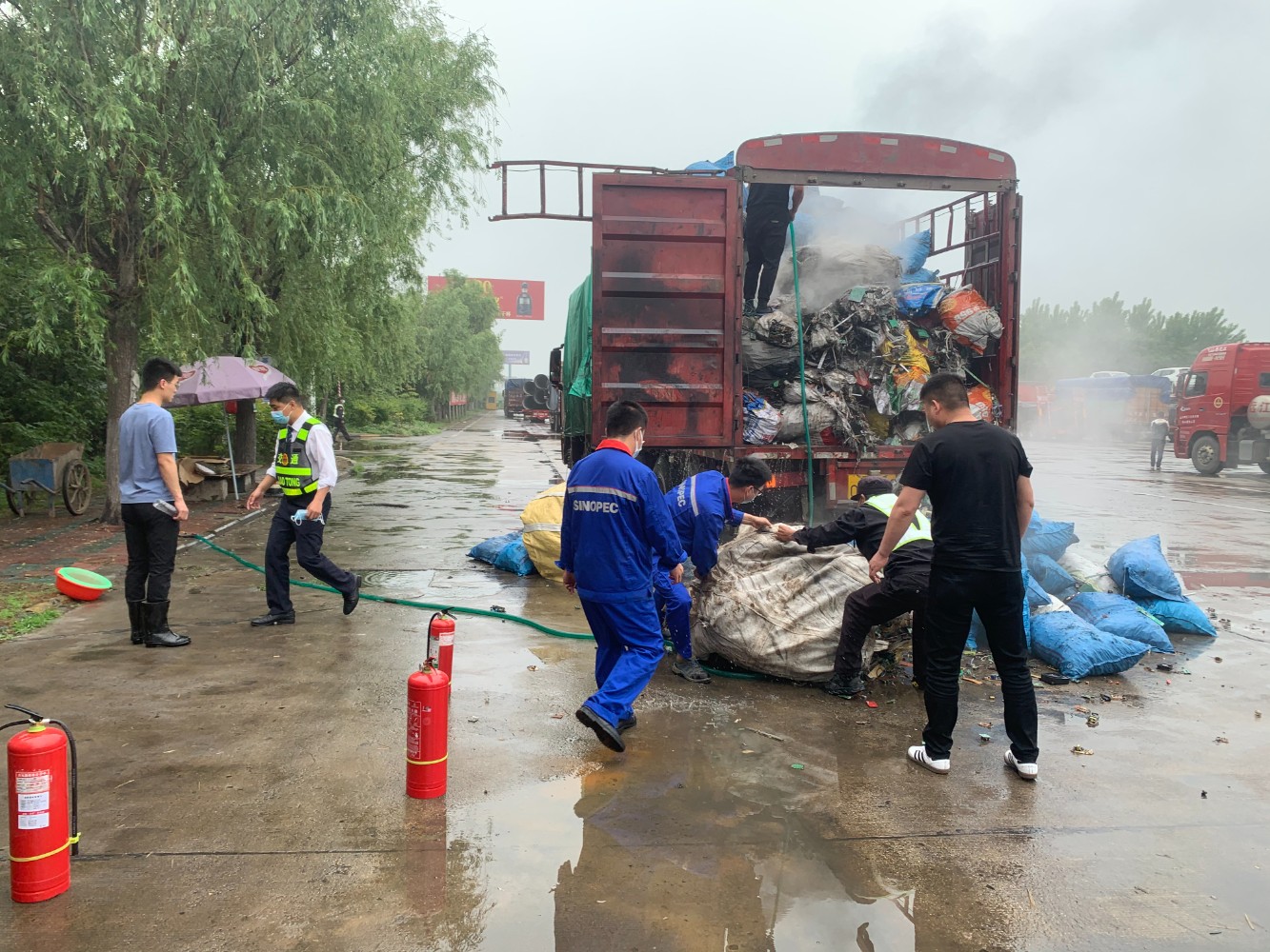 5月14日,漯河服務區監管人員發現一輛冒出濃濃黑煙、滿載廢舊電子材料的貨車行駛到服務區西區廣場。因自燃車輛距離加油站不足百米,為避免更大險情,服務區監管人員立即啟動應急預案,引導車輛停靠在指定位置,召集加油站員工、交通疏導員等攜帶各類滅火器具趕至現場,同時撥打119電話報警。