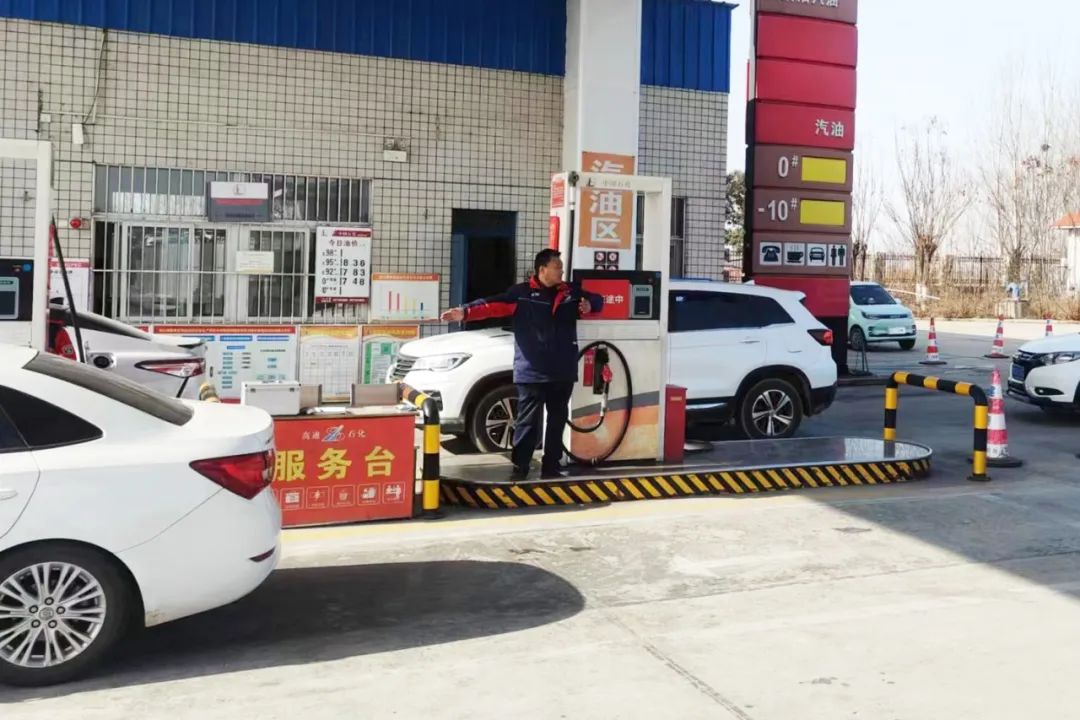 2月10日,銅山湖服務(wù)區(qū)加油站指揮車輛有序進(jìn)站加油
