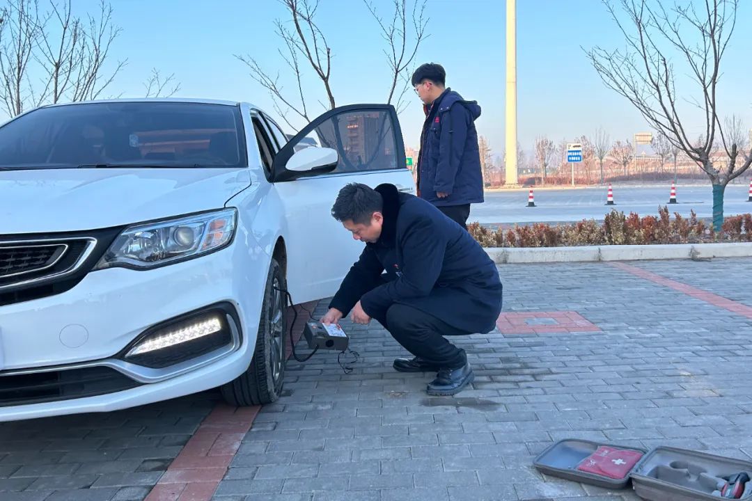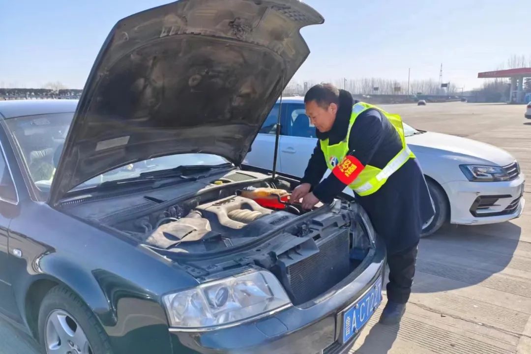2月11日,寧陵服務(wù)區(qū)員工為過往司乘檢查汽車電瓶、機(jī)油等 確保車輛正常行駛