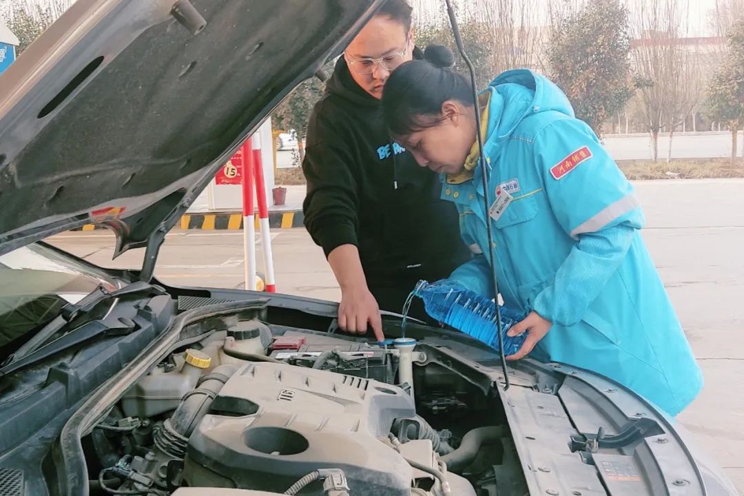 2月10日,衛(wèi)輝下站口加油站員工幫助司乘添加玻璃水